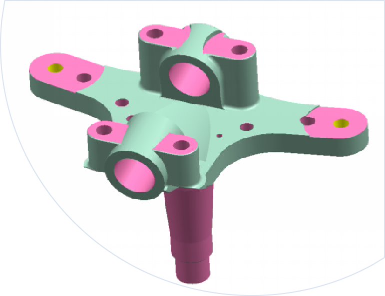 OP70: Use φ63 disc milling cutter, φ10 center hole, φ6.5 drill to process plane and cross hole